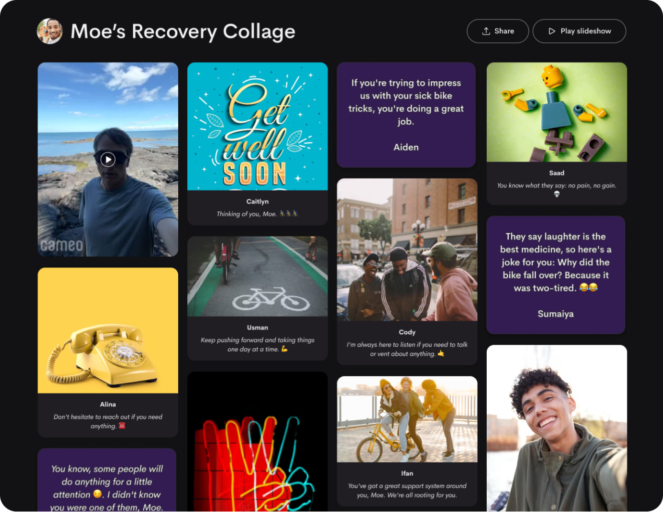 Turn your Cameo video into a free collage featuring personalized messages from friends and family.